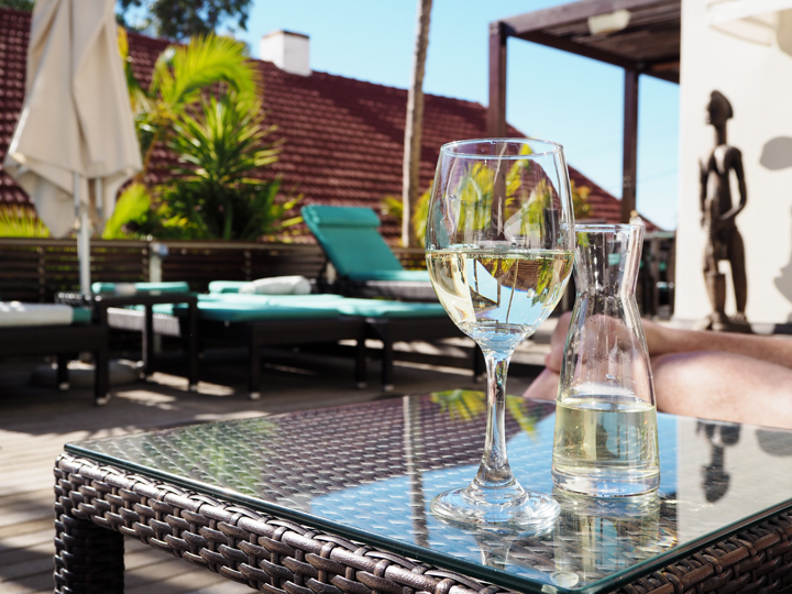 Im The Glen werde ich mit einem Smoothie begrüßt, da mein Zimmer noch hergerichtet wird, beschließe ich dem Smoothie einen eisgekühlten Chardonnay folgen zu lassen und mache es mir auf der Sonnenterasse gemütlich. Kein Stress, keine Termine, Sonne im Gesicht und ein paar Palmen im Nacken. Meine Definition von Luxus.