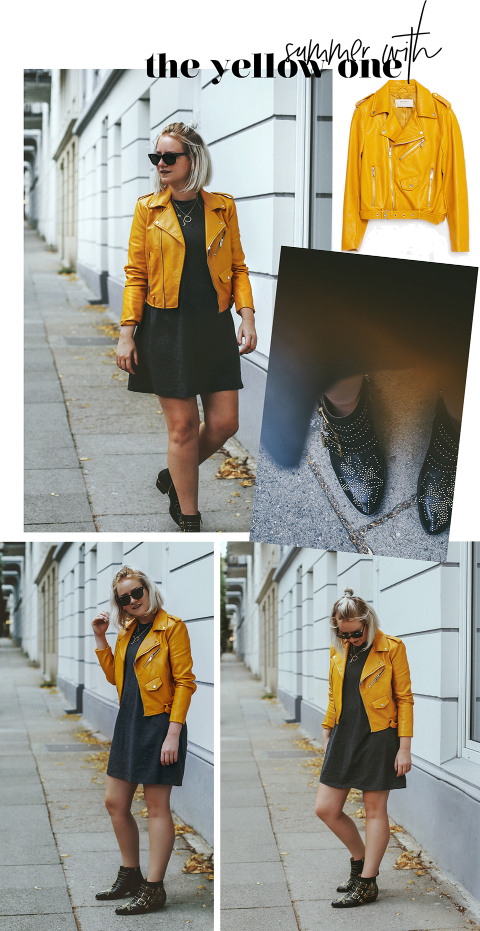 Als ich ihr vor 2 Wochen auf einem Open Air in die Arme lief, trug sie diese gelbe Lederjacke von Zara. Und ich? Schockverliebt. Nun ist Luise zwar ein Brownie und ich trage aktuell einen blonden Bob mit mir herum, aber trotzdem finde ich es spannend, dass sowohl zu ihr, als auch zu mir der Look passt und sich dann noch einmal ganz individuell anpasst.